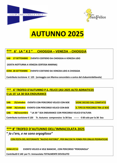 DEGLI EVENTI VELICI VENGONO FATTE CON